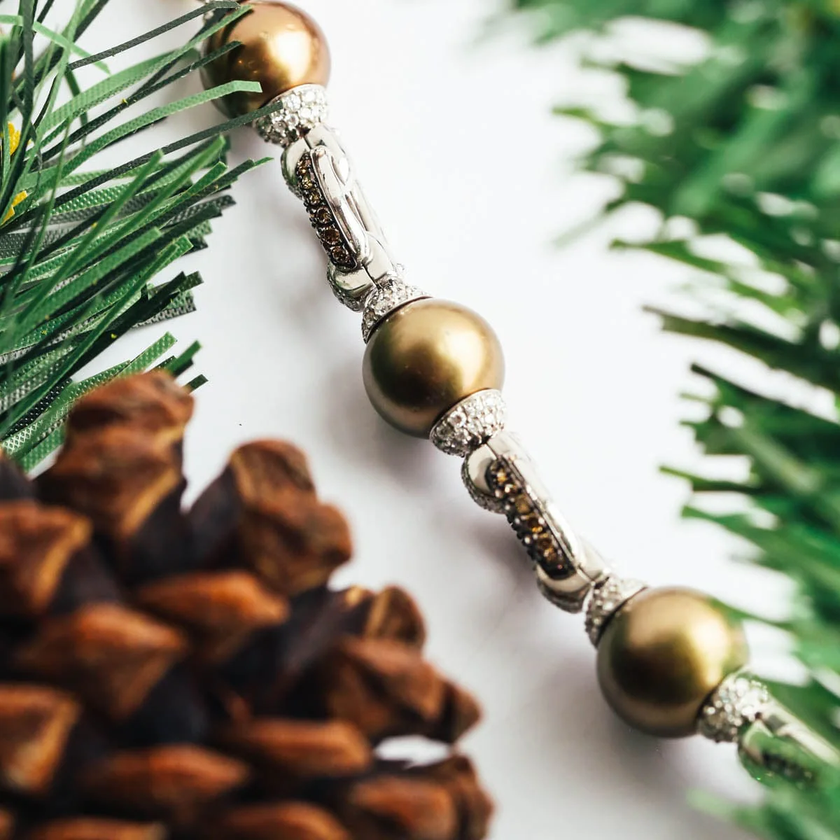 Brown Pearl Necklace with Diamond Accents