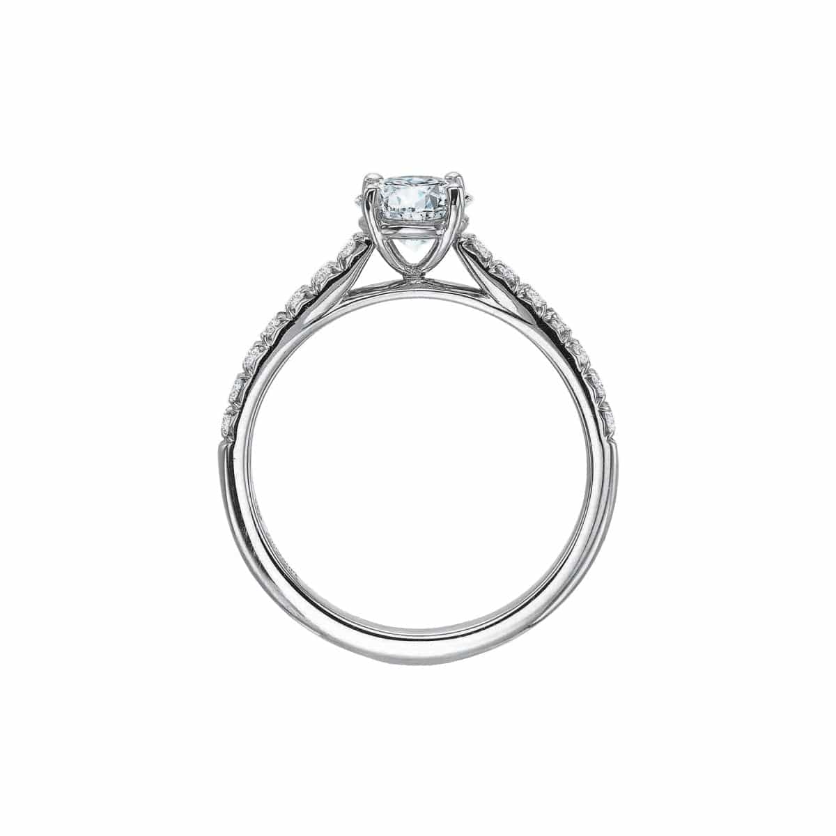 Precision Set's New Aire Semi Mount Ring has a shank crafted from platinum with round brilliant diamonds set half way around.