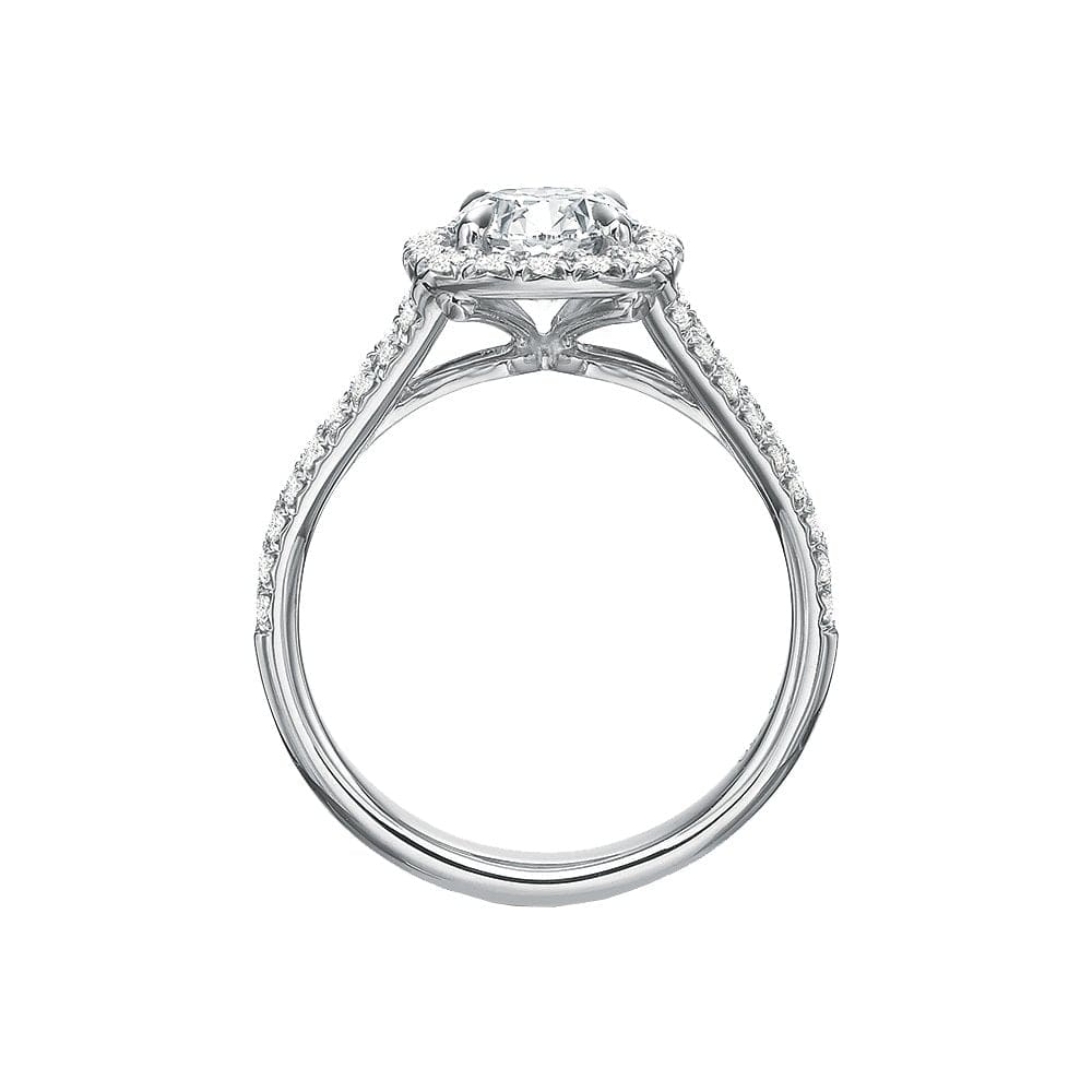 Gia 1192135207 18k white gold 1=1.04ct d si2 cu, 54=0.49ct gh si br diamond halo ring, 4 prong center, prong set cushion halo and down 2 row split shank