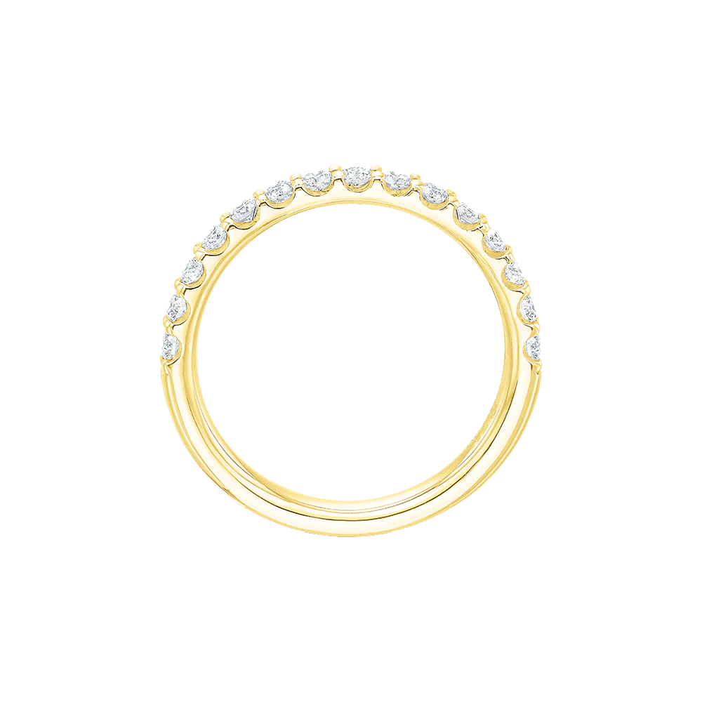 18k yellow gold 15=0.38ct h si1 br diamond comfort fit band, shared prong set