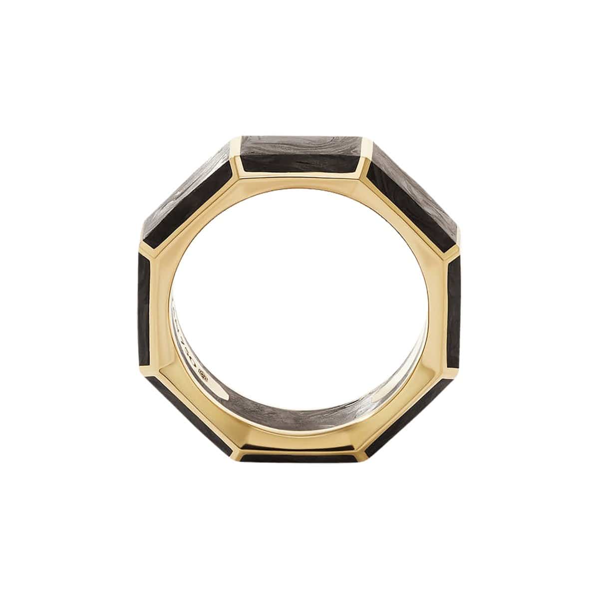 8mm Forged Carbon Faceted Band with 18k Yellow Gold