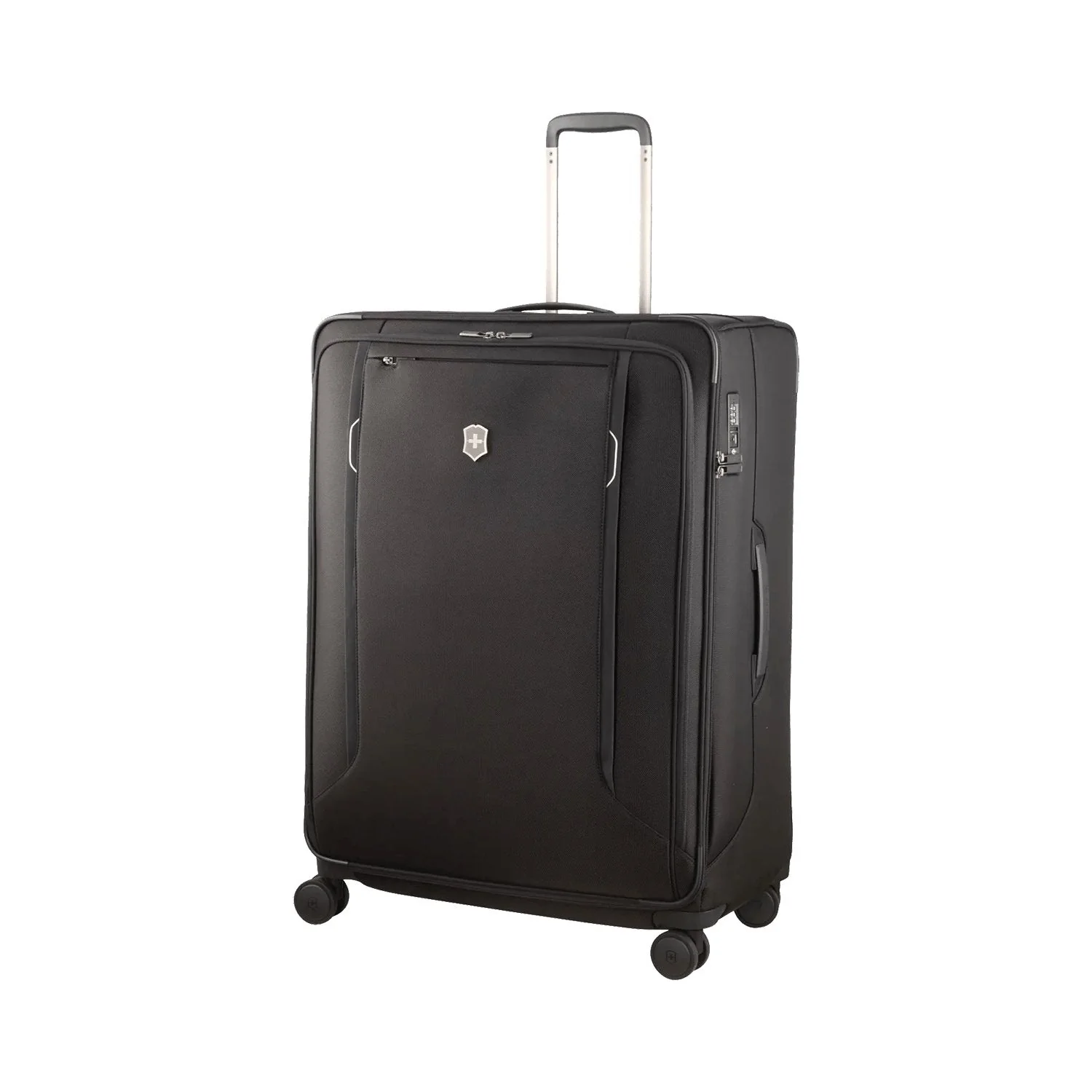 Extra-Spacious Wheeled Upright - Focused, flexible and able to compartmentalize – these attributes of the most experienced business travelers also describe the Werks Traveler 6.0 line of luggage from Victorinox, which we’ve developed to streamline and stylize business travel. This is why the collection's Softside Extra-Large Case is realized in extra-strong abrasion-resistant nylon and fitted with a Swiss-engineered handle system for comfort and stability. From Hinomoto wheels with Lisof® silent tires to the Pack More system with self-cleaning YKK® RC coil zippers, the case includes all you need on your travels – and more.